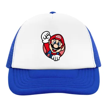 Super mario win, Child's Soft Trucker Hat with Blue/White Mesh (POLYESTER, CHILD, ONE SIZE)