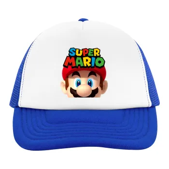 Super mario, Child's Soft Trucker Hat with Blue/White Mesh (POLYESTER, CHILD, ONE SIZE)