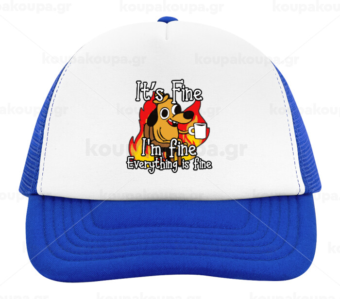 It's Fine I'm Fine Everything Is Fine, Child's Soft Trucker Hat with Blue/White Mesh (POLYESTER, CHILD, ONE SIZE)