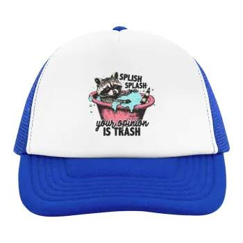 Splish splash your opinion is trash, Child's Soft Trucker Hat with Blue/White Mesh (POLYESTER, CHILD, ONE SIZE)