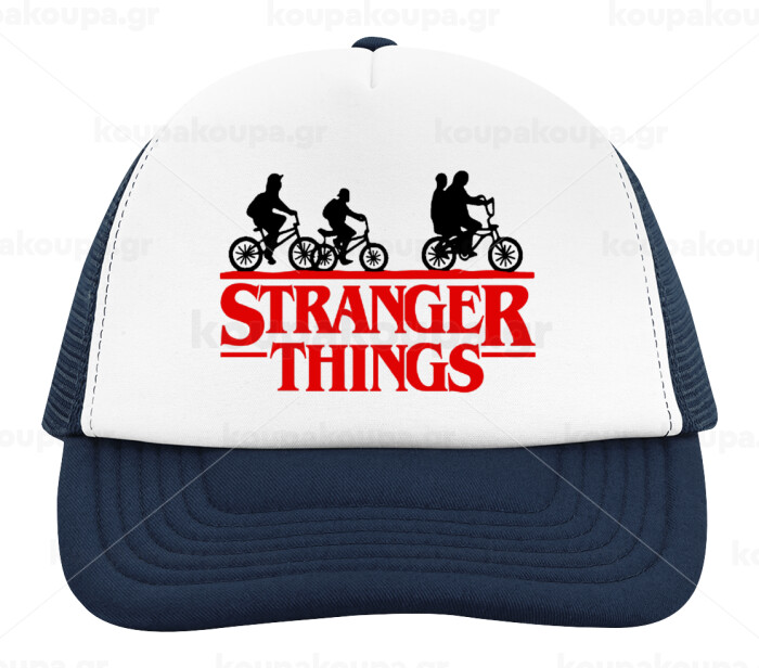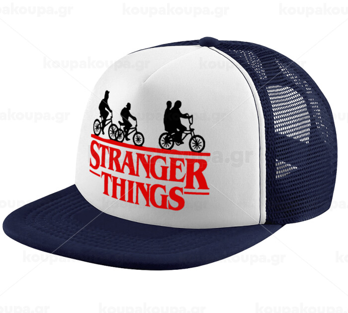 Stranger Things red, Children's Soft Trucker Cap with Dark Blue/White Mesh (POLYESTER, CHILDREN, ONE SIZE)