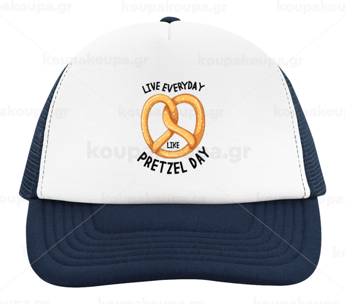 The office, Live every day like pretzel day, Children's Soft Trucker Cap with Dark Blue/White Mesh (POLYESTER, CHILDREN, ONE SIZE)
