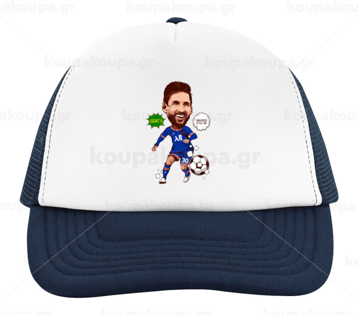 Lionel Messi drawing, Children's Soft Trucker Cap with Dark Blue/White Mesh (POLYESTER, CHILDREN, ONE SIZE)