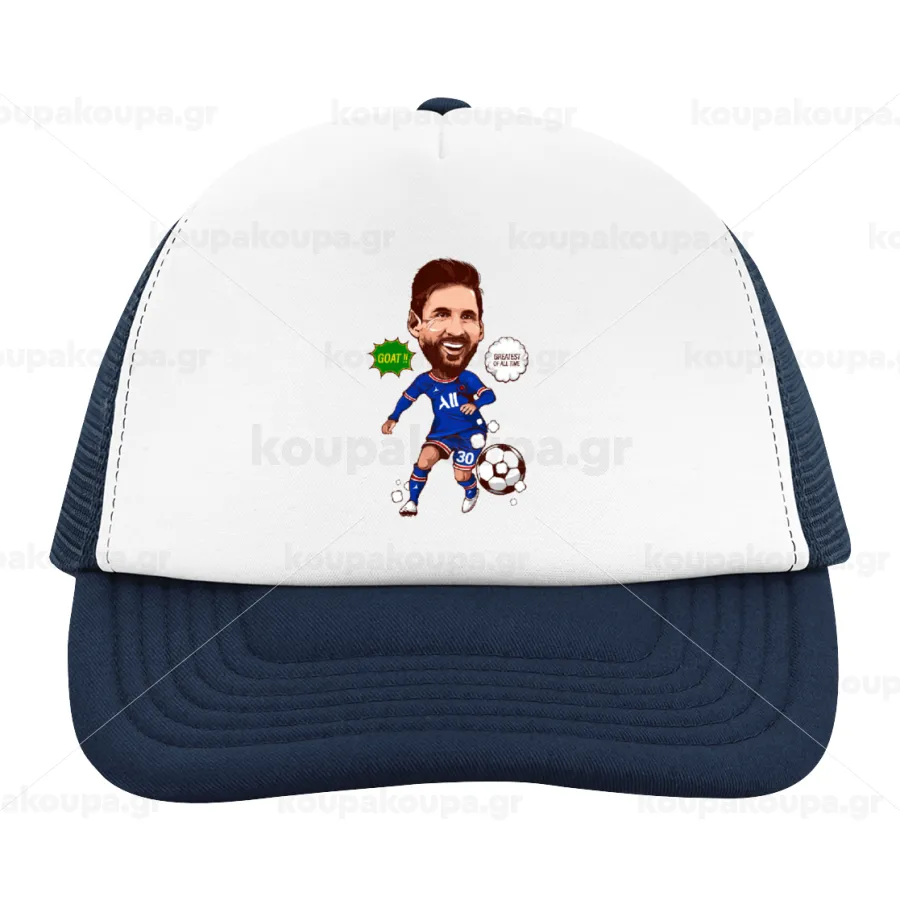 Lionel Messi drawing, Children's Soft Trucker Cap with Dark Blue/White Mesh (POLYESTER, CHILDREN, ONE SIZE)