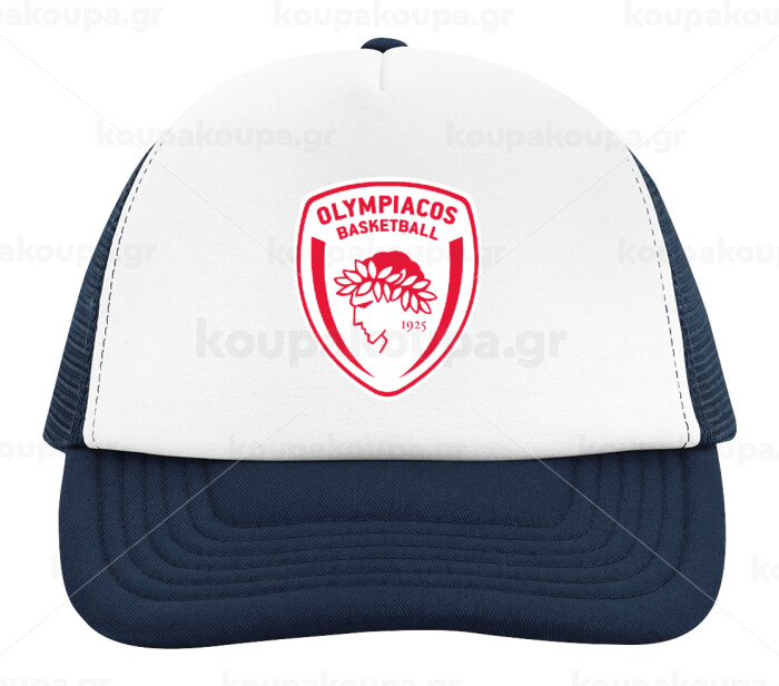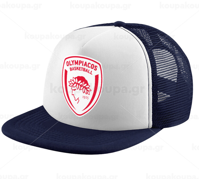 Olympiacos B.C., Children's Soft Trucker Cap with Dark Blue/White Mesh (POLYESTER, CHILDREN, ONE SIZE)