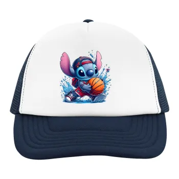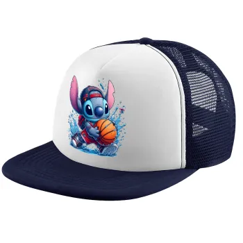Stitch Basketball, Children's Soft Trucker Cap with Dark Blue/White Mesh (POLYESTER, CHILDREN, ONE SIZE)