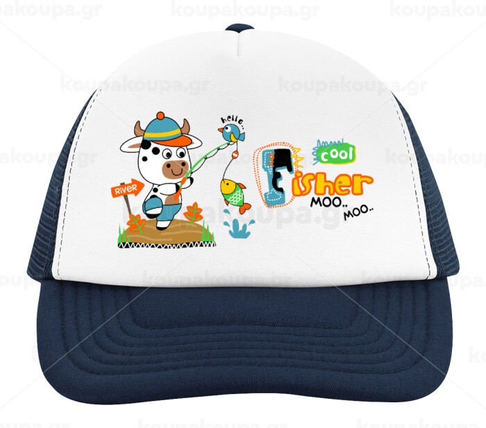 Kids Fisherman, Children's Soft Trucker Cap with Dark Blue/White Mesh (POLYESTER, CHILDREN, ONE SIZE)