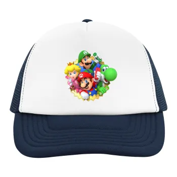 Super mario and Friends, Children's Soft Trucker Cap with Dark Blue/White Mesh (POLYESTER, CHILDREN, ONE SIZE)