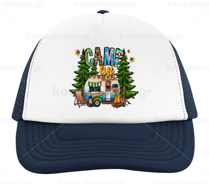 Camp Life, Children's Soft Trucker Cap with Dark Blue/White Mesh (POLYESTER, CHILDREN, ONE SIZE)