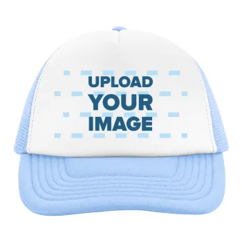Upload your logo, Child's Soft Trucker Hat with Blue/White Mesh (POLYESTER, CHILD, ONE SIZE)