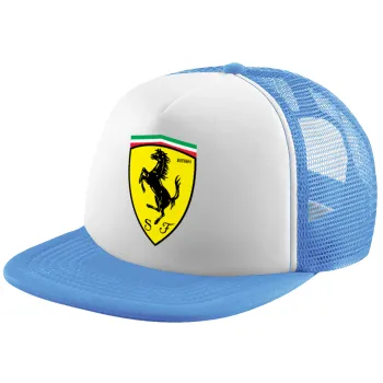 Ferrari, Child's Soft Trucker Hat with Blue/White Mesh (POLYESTER, CHILD, ONE SIZE)