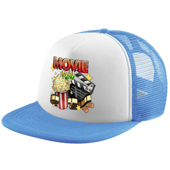Movie night, Child's Soft Trucker Hat with Blue/White Mesh (POLYESTER, CHILD, ONE SIZE)