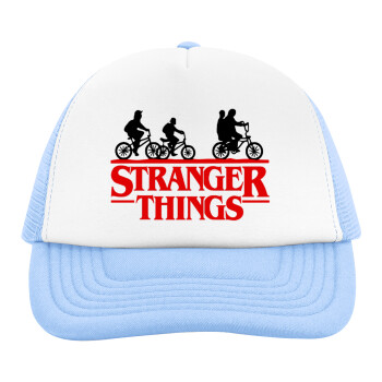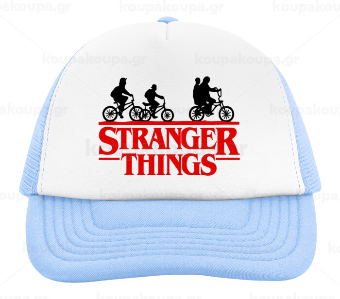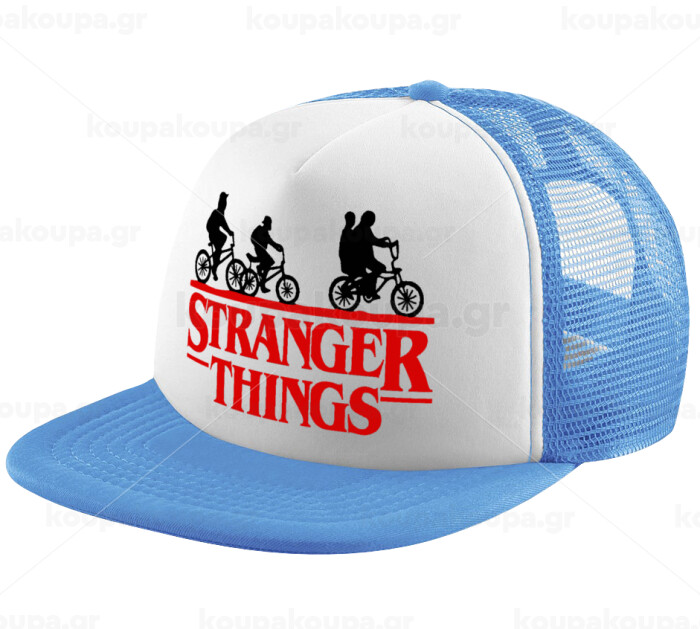 Stranger Things red, Child's Soft Trucker Hat with Blue/White Mesh (POLYESTER, CHILD, ONE SIZE)