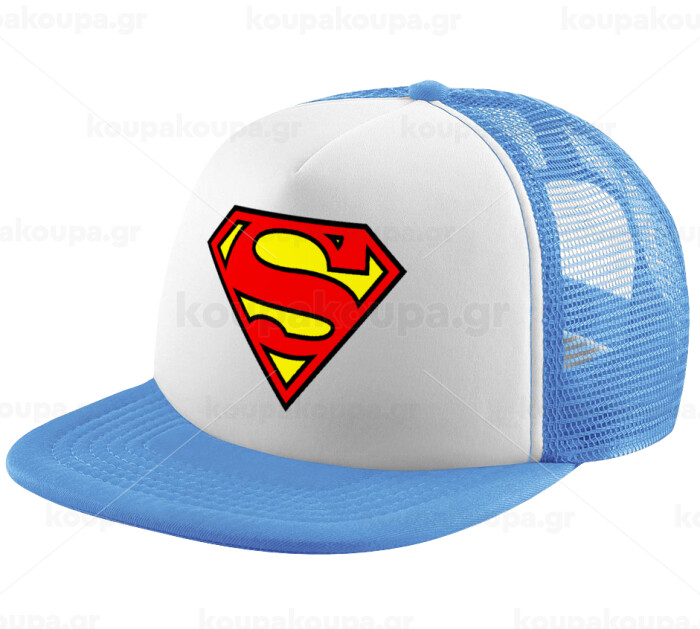 Superman vintage, Child's Soft Trucker Hat with Blue/White Mesh (POLYESTER, CHILD, ONE SIZE)