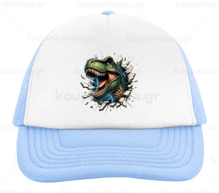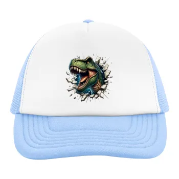Dinosaur break wall, Child's Soft Trucker Hat with Blue/White Mesh (POLYESTER, CHILD, ONE SIZE)