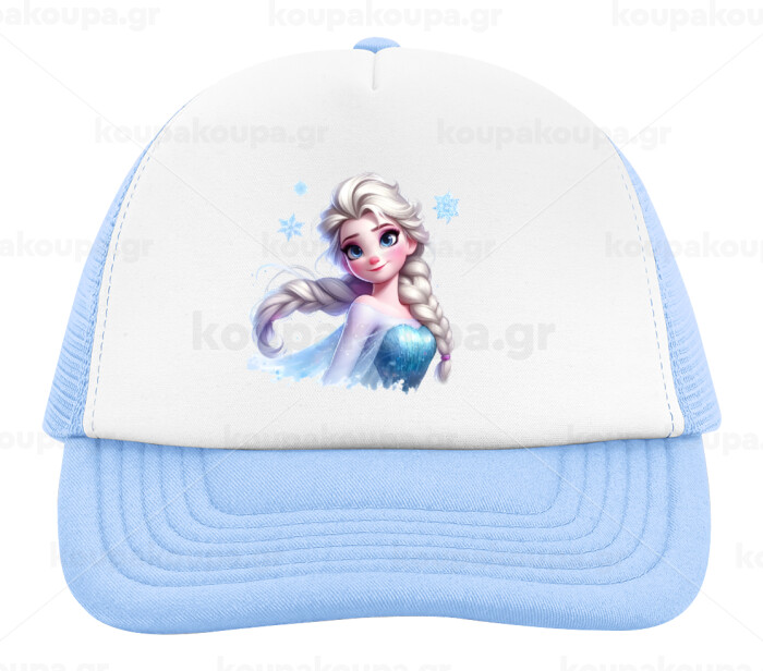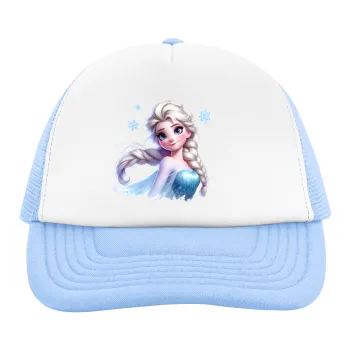 Elsa Princess, Child's Soft Trucker Hat with Blue/White Mesh (POLYESTER, CHILD, ONE SIZE)