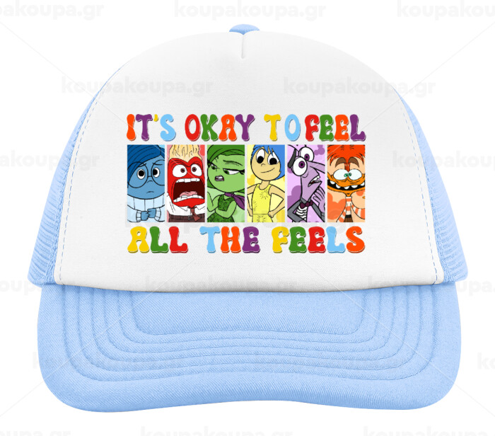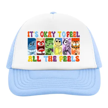 Inside Out It's Okay To Feel All The Feels , Child's Soft Trucker Hat with Blue/White Mesh (POLYESTER, CHILD, ONE SIZE)