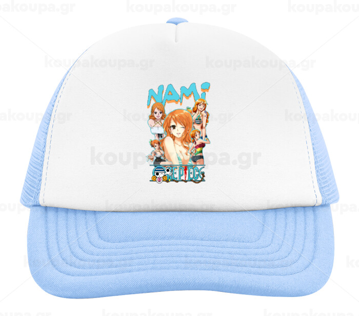 Nami One Piece, Child's Soft Trucker Hat with Blue/White Mesh (POLYESTER, CHILD, ONE SIZE)