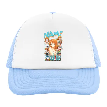 Nami One Piece, Child's Soft Trucker Hat with Blue/White Mesh (POLYESTER, CHILD, ONE SIZE)
