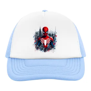 Spiderman City, Child's Soft Trucker Hat with Blue/White Mesh (POLYESTER, CHILD, ONE SIZE)