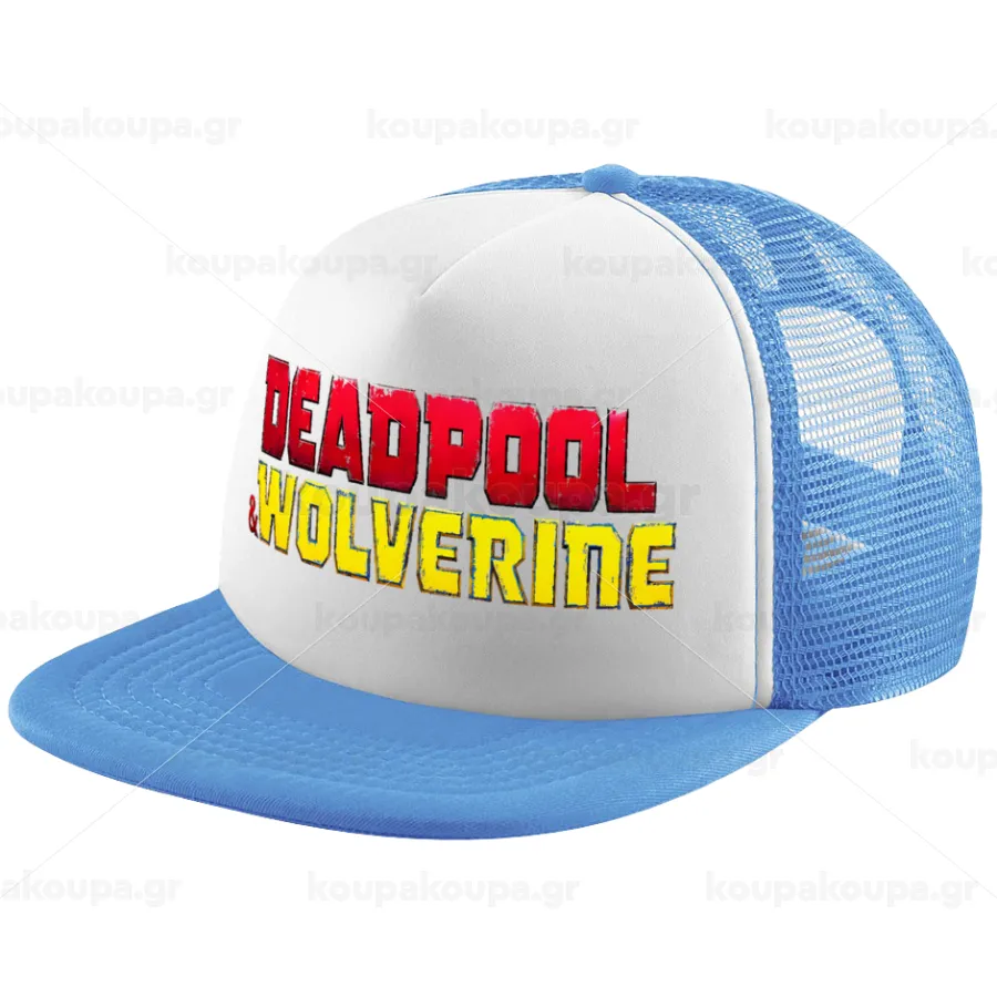 Superhero Deadpool Wolverine, Child's Soft Trucker Hat with Blue/White Mesh (POLYESTER, CHILD, ONE SIZE)