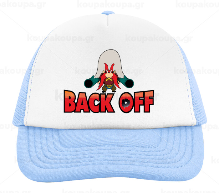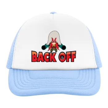 Yosemite Sam Back OFF, Child's Soft Trucker Hat with Blue/White Mesh (POLYESTER, CHILD, ONE SIZE)