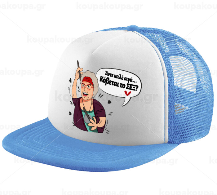 Αντε καλέ, σιγά, κόβεται το σέξ ;, Child's Soft Trucker Hat with Blue/White Mesh (POLYESTER, CHILD, ONE SIZE)