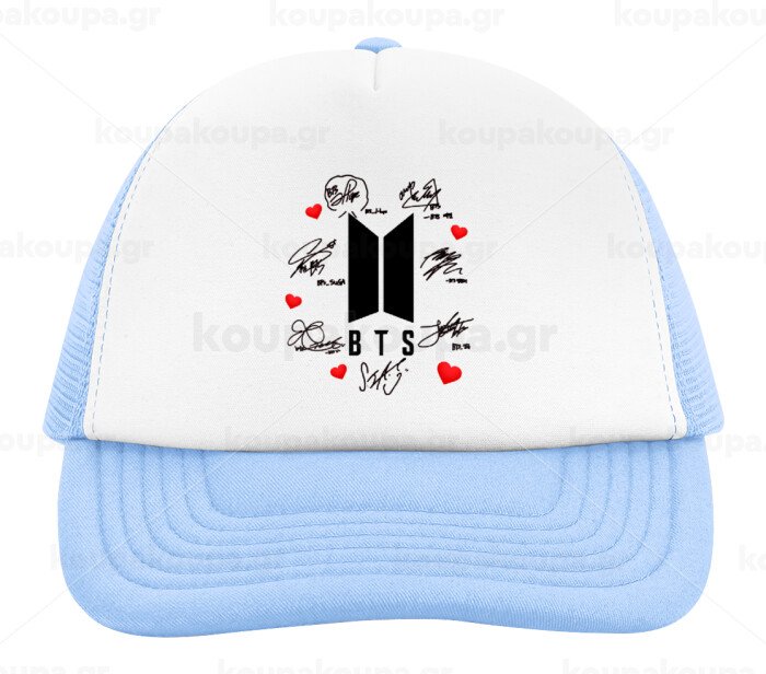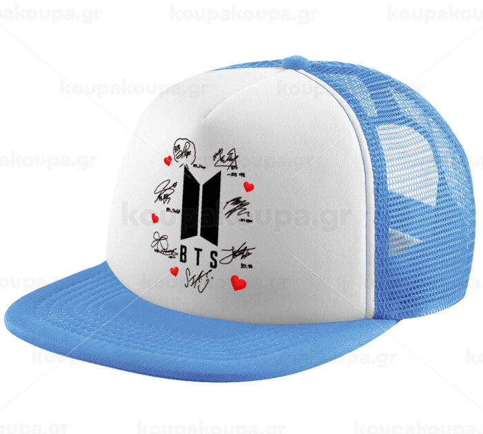 BTS signs, Child's Soft Trucker Hat with Blue/White Mesh (POLYESTER, CHILD, ONE SIZE)