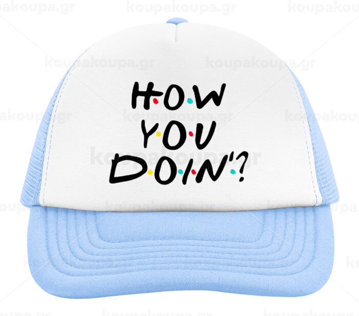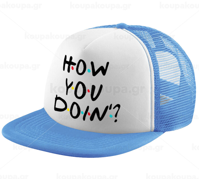 Friends How You Doin'?, Child's Soft Trucker Hat with Blue/White Mesh (POLYESTER, CHILD, ONE SIZE)