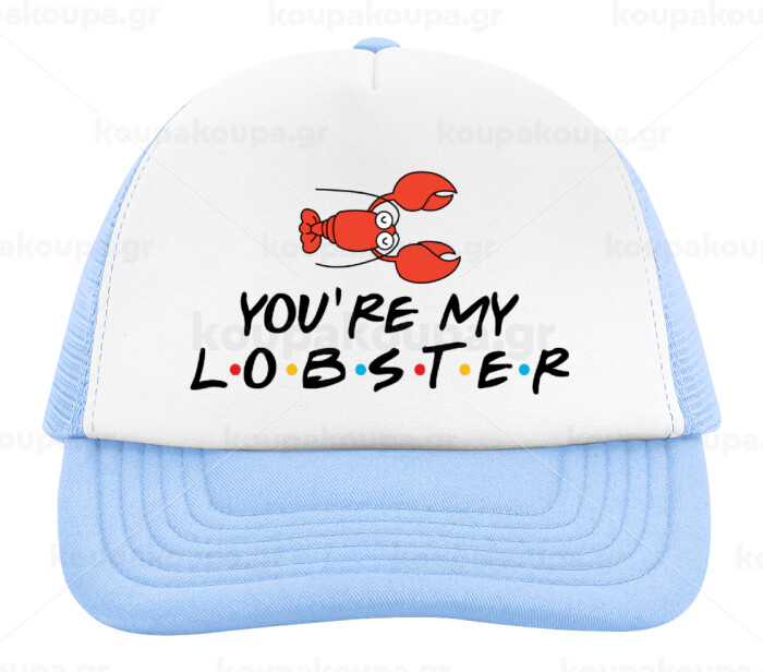 Friends you're my lobster, Child's Soft Trucker Hat with Blue/White Mesh (POLYESTER, CHILD, ONE SIZE)