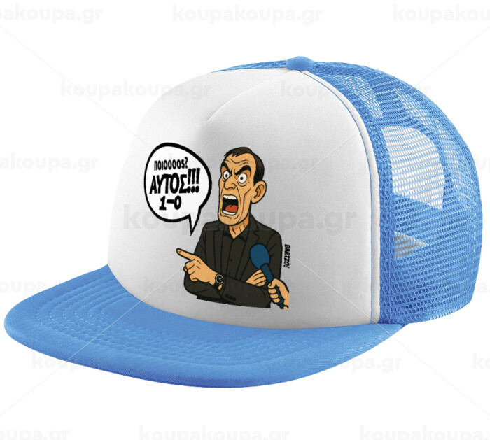 Μπαρτζό, Ποιος? Αυτός!!! 1-0, Child's Soft Trucker Hat with Blue/White Mesh (POLYESTER, CHILD, ONE SIZE)