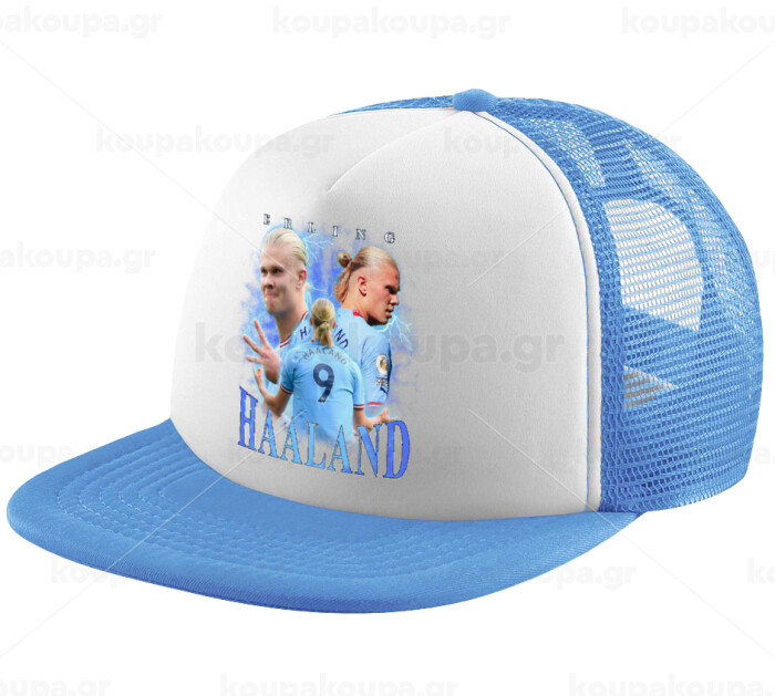 Erling Haaland, Child's Soft Trucker Hat with Blue/White Mesh (POLYESTER, CHILD, ONE SIZE)