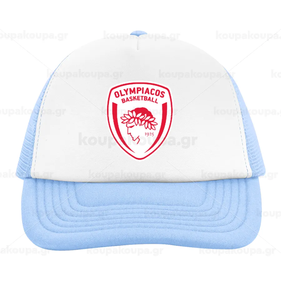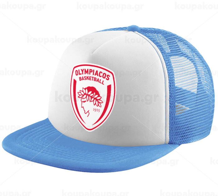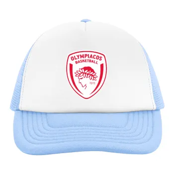 Olympiacos B.C., Child's Soft Trucker Hat with Blue/White Mesh (POLYESTER, CHILD, ONE SIZE)