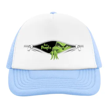 Grinch, eww people, Child's Soft Trucker Hat with Blue/White Mesh (POLYESTER, CHILD, ONE SIZE)
