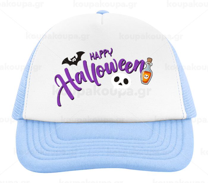 Happy Halloween (Χαλοουίν), Child's Soft Trucker Hat with Blue/White Mesh (POLYESTER, CHILD, ONE SIZE)
