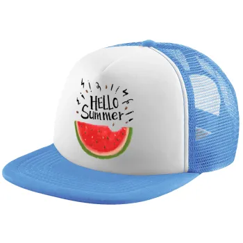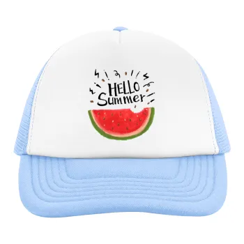 Summer Watermelon, Child's Soft Trucker Hat with Blue/White Mesh (POLYESTER, CHILD, ONE SIZE)