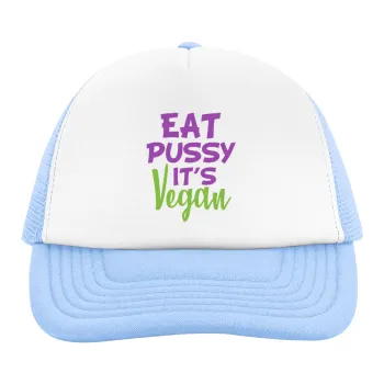 EAT pussy it's vegan, Child's Soft Trucker Hat with Blue/White Mesh (POLYESTER, CHILD, ONE SIZE)