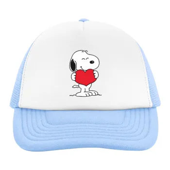 Snoopy takemy heart, Child's Soft Trucker Hat with Blue/White Mesh (POLYESTER, CHILD, ONE SIZE)