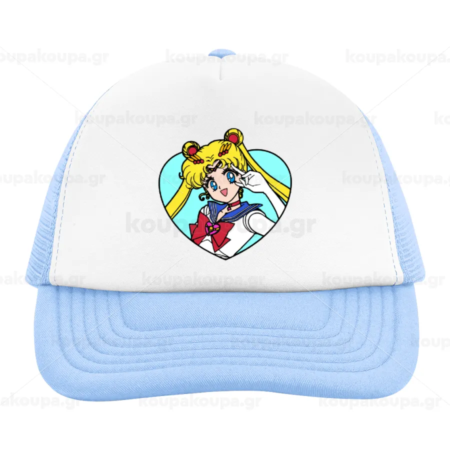 Sailor Moon star, Child's Soft Trucker Hat with Blue/White Mesh (POLYESTER, CHILD, ONE SIZE)