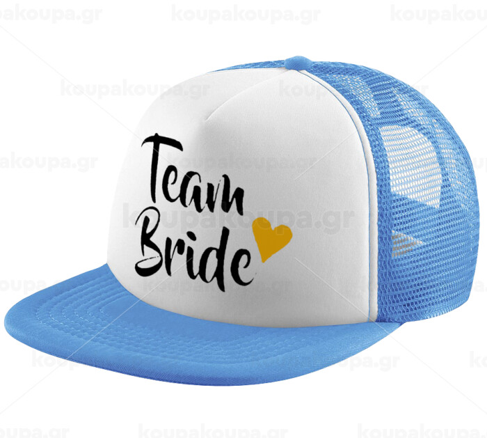Team Bride, Child's Soft Trucker Hat with Blue/White Mesh (POLYESTER, CHILD, ONE SIZE)