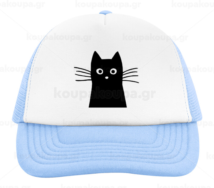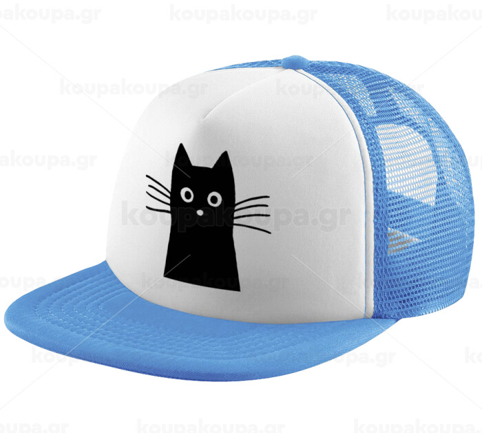Black Cat, Child's Soft Trucker Hat with Blue/White Mesh (POLYESTER, CHILD, ONE SIZE)