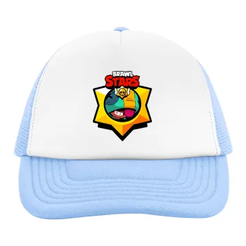 Brawl Stars Leon, Child's Soft Trucker Hat with Blue/White Mesh (POLYESTER, CHILD, ONE SIZE)