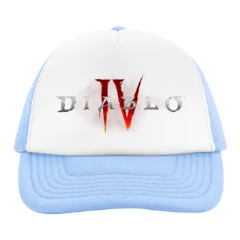 Diablo iv, Child's Soft Trucker Hat with Blue/White Mesh (POLYESTER, CHILD, ONE SIZE)