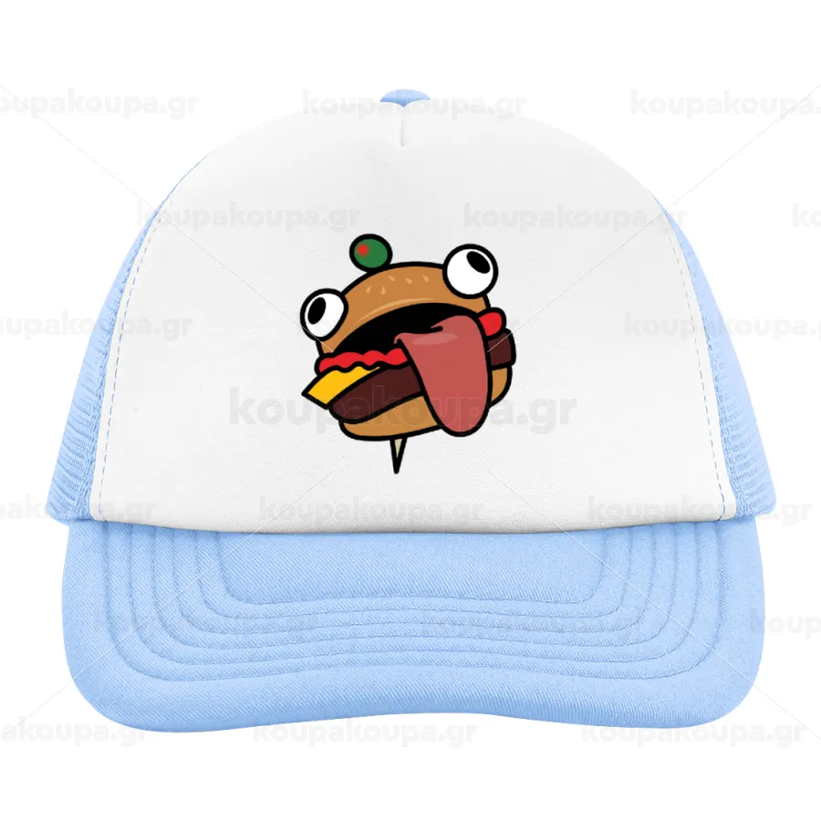 Fortnite Durr Burger, Child's Soft Trucker Hat with Blue/White Mesh (POLYESTER, CHILD, ONE SIZE)