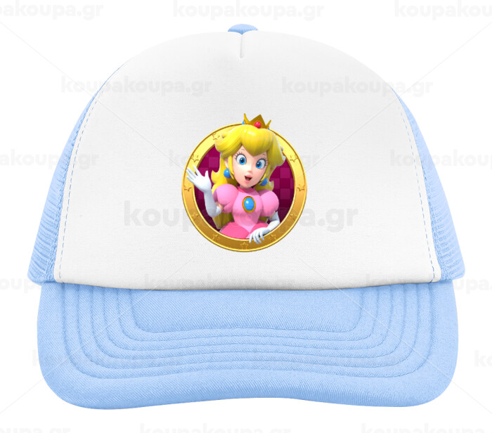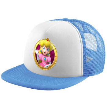 Princess Peach Toadstool, Child's Soft Trucker Hat with Blue/White Mesh (POLYESTER, CHILD, ONE SIZE)