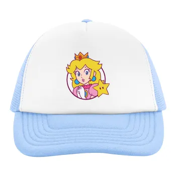 Princess Peach, Child's Soft Trucker Hat with Blue/White Mesh (POLYESTER, CHILD, ONE SIZE)