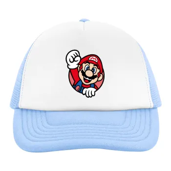 Super mario win, Child's Soft Trucker Hat with Blue/White Mesh (POLYESTER, CHILD, ONE SIZE)