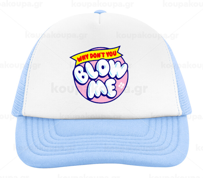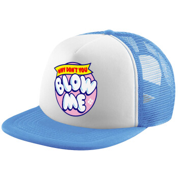 Why Don't You Blow Me Funny, Child's Soft Trucker Hat with Blue/White Mesh (POLYESTER, CHILD, ONE SIZE)