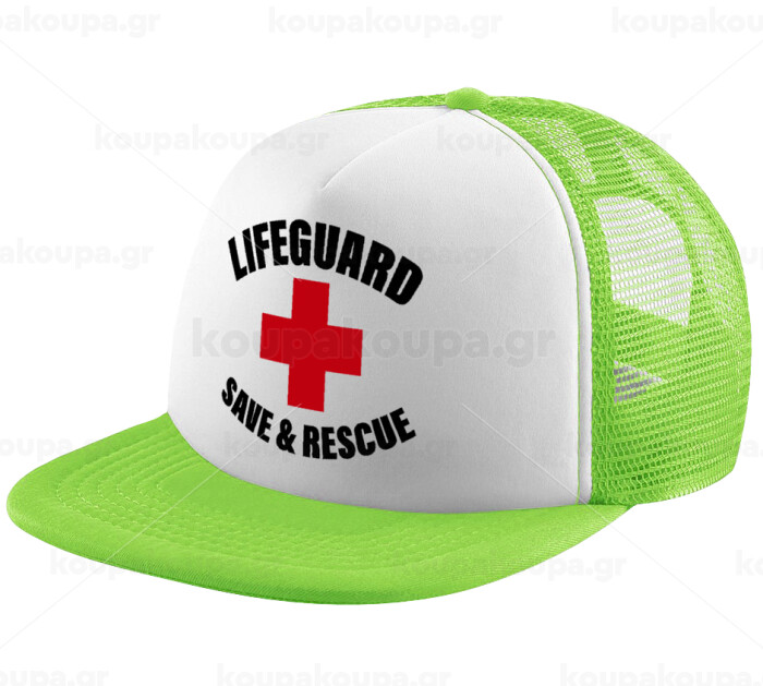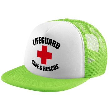 Lifeguard Save & Rescue, Child's Soft Trucker Hat with Green/White Mesh (POLYESTER, CHILDREN'S, ONE SIZE)