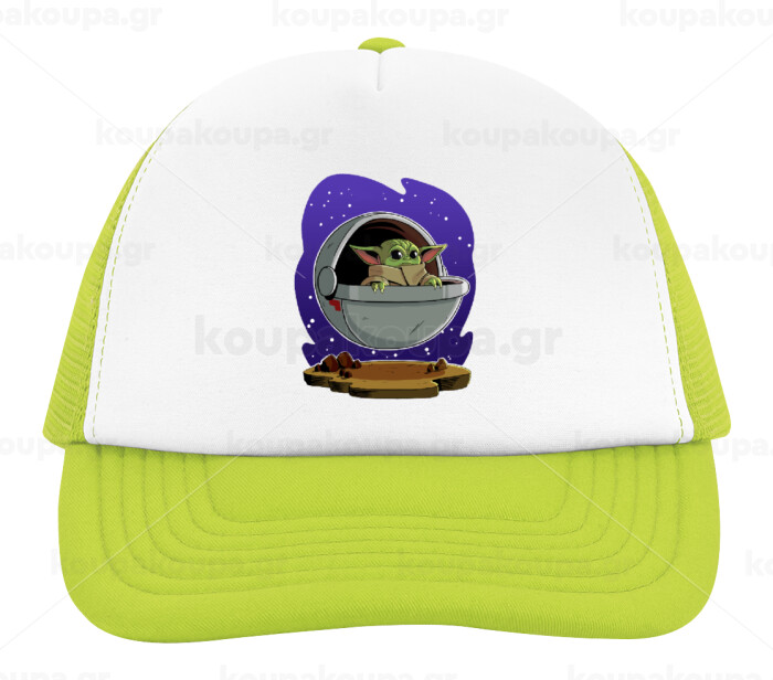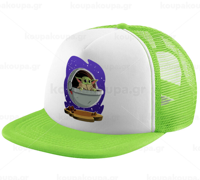 Baby Yoda mandalorian, Child's Soft Trucker Hat with Green/White Mesh (POLYESTER, CHILDREN'S, ONE SIZE)